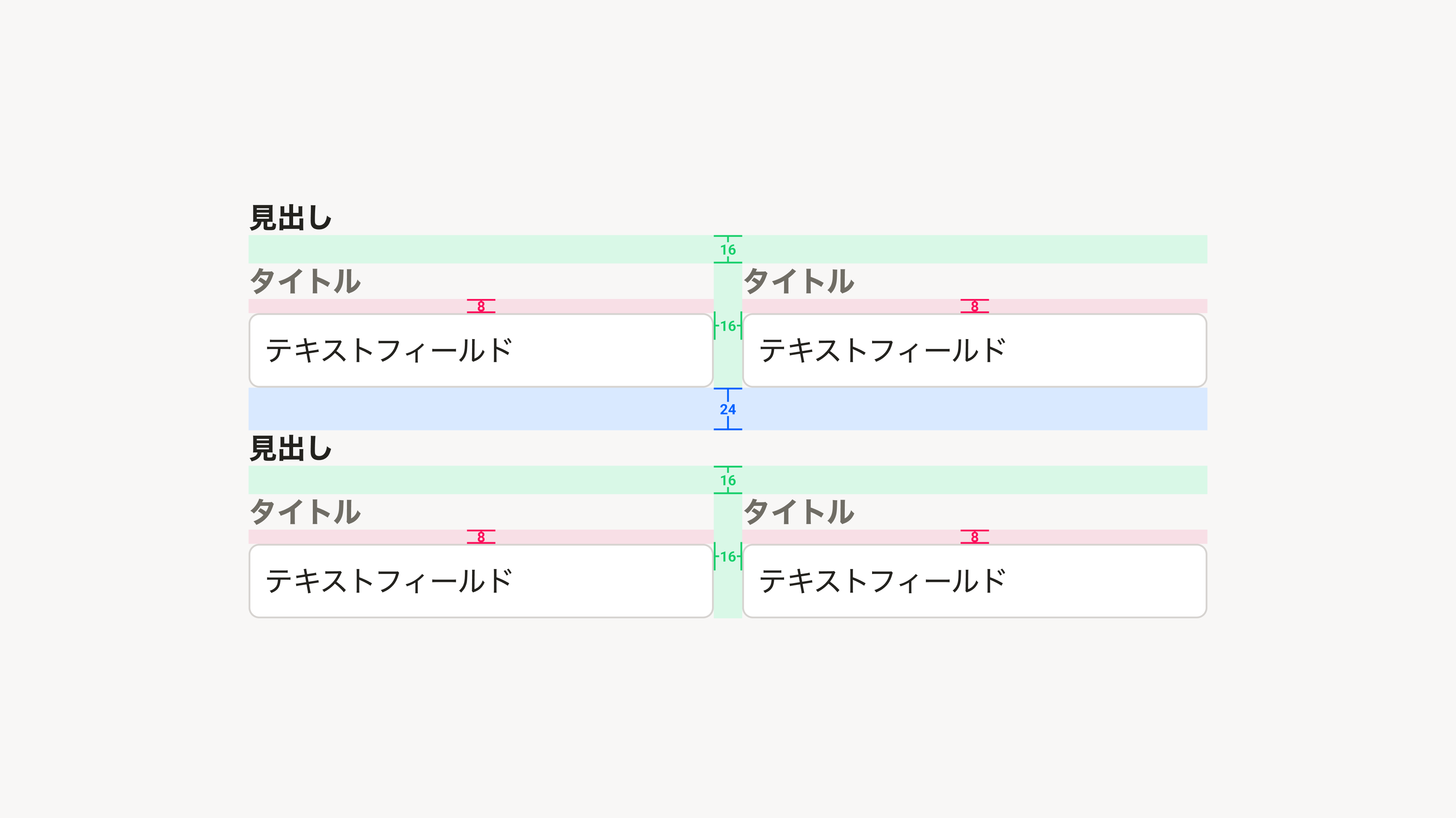 基本的に見出し領域とBaseを垂直方向に積み重ねてレイアウトしますが、以下のようにセクションの範囲を視覚的に明確に示したい場合にはBaseの中に見出し領域を含めることもできます。