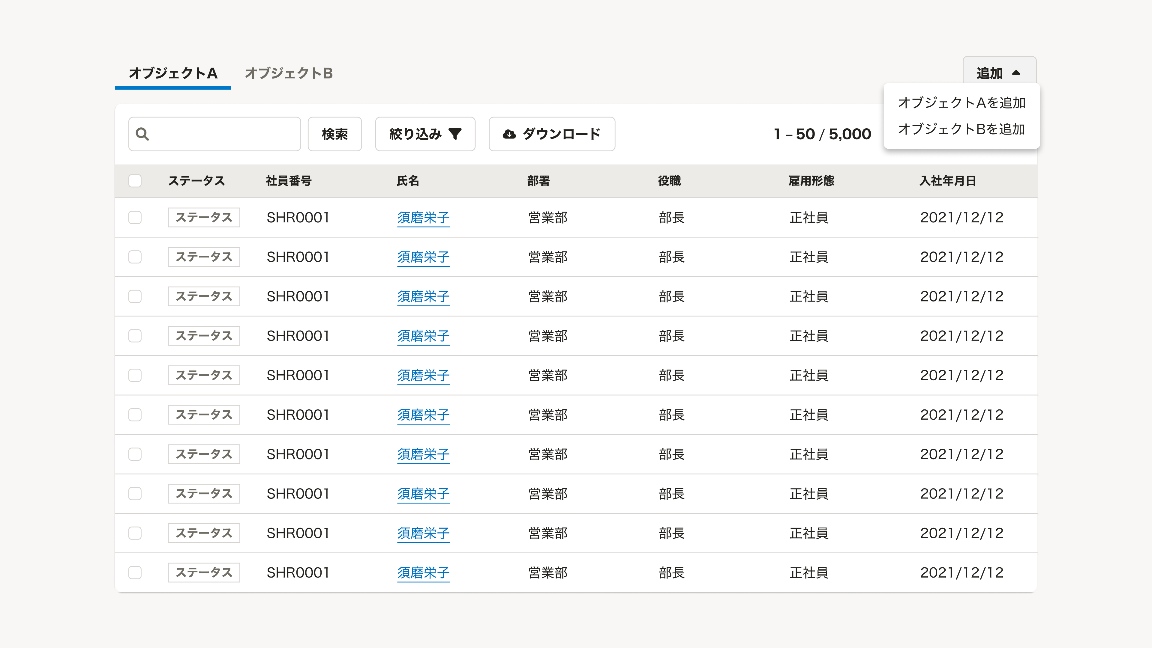 SmartHR全体で一貫性のあるグルーピングをすることで、ユーザーは経験に基づいて情報の意味や階層を推測しながらアプリケーションを使えます。デザインパターンに基づいたグルーピングを検討してください。