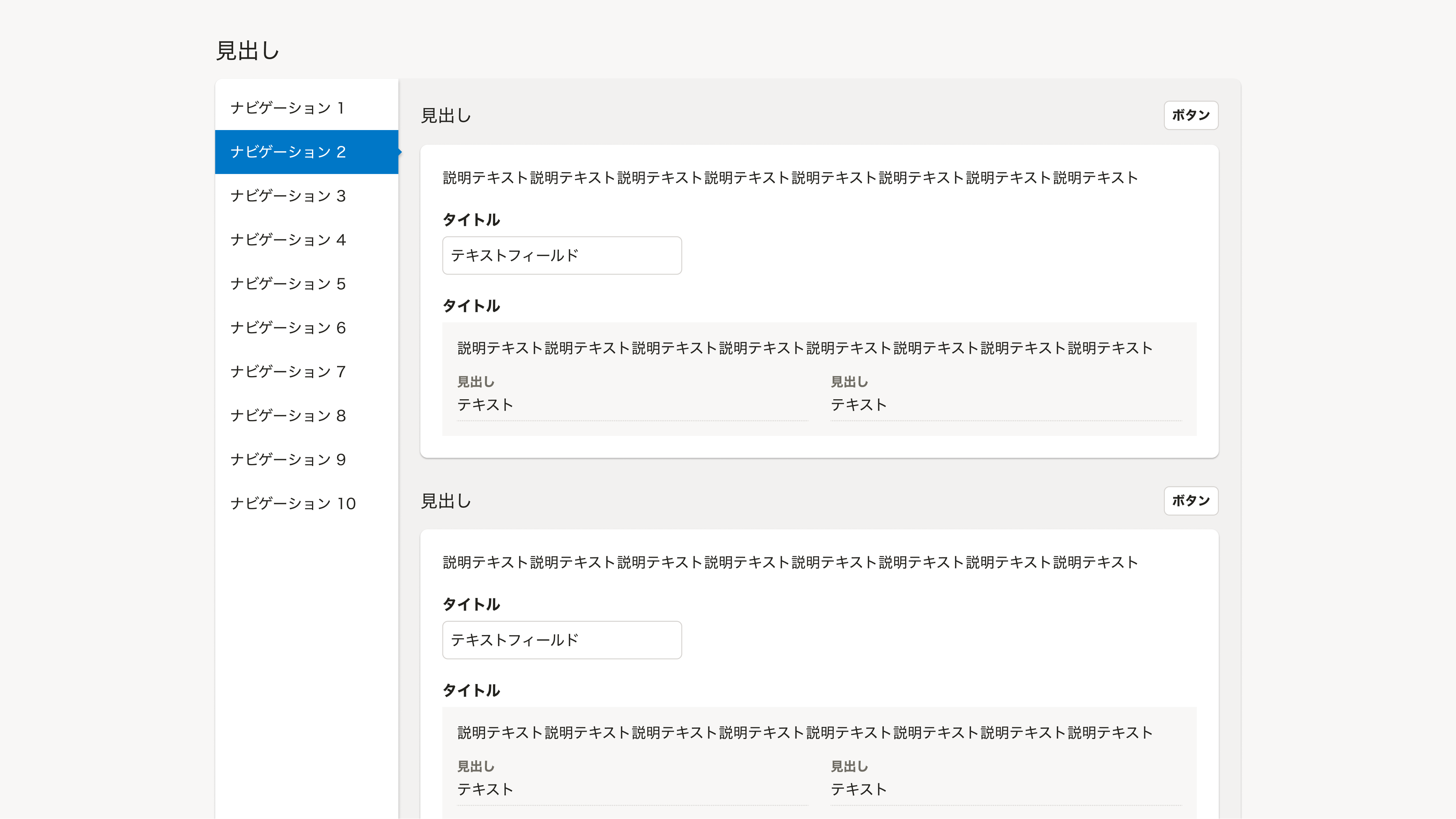 • 左カラムのSideNavによって、右カラムのコンテンツを切り替える。